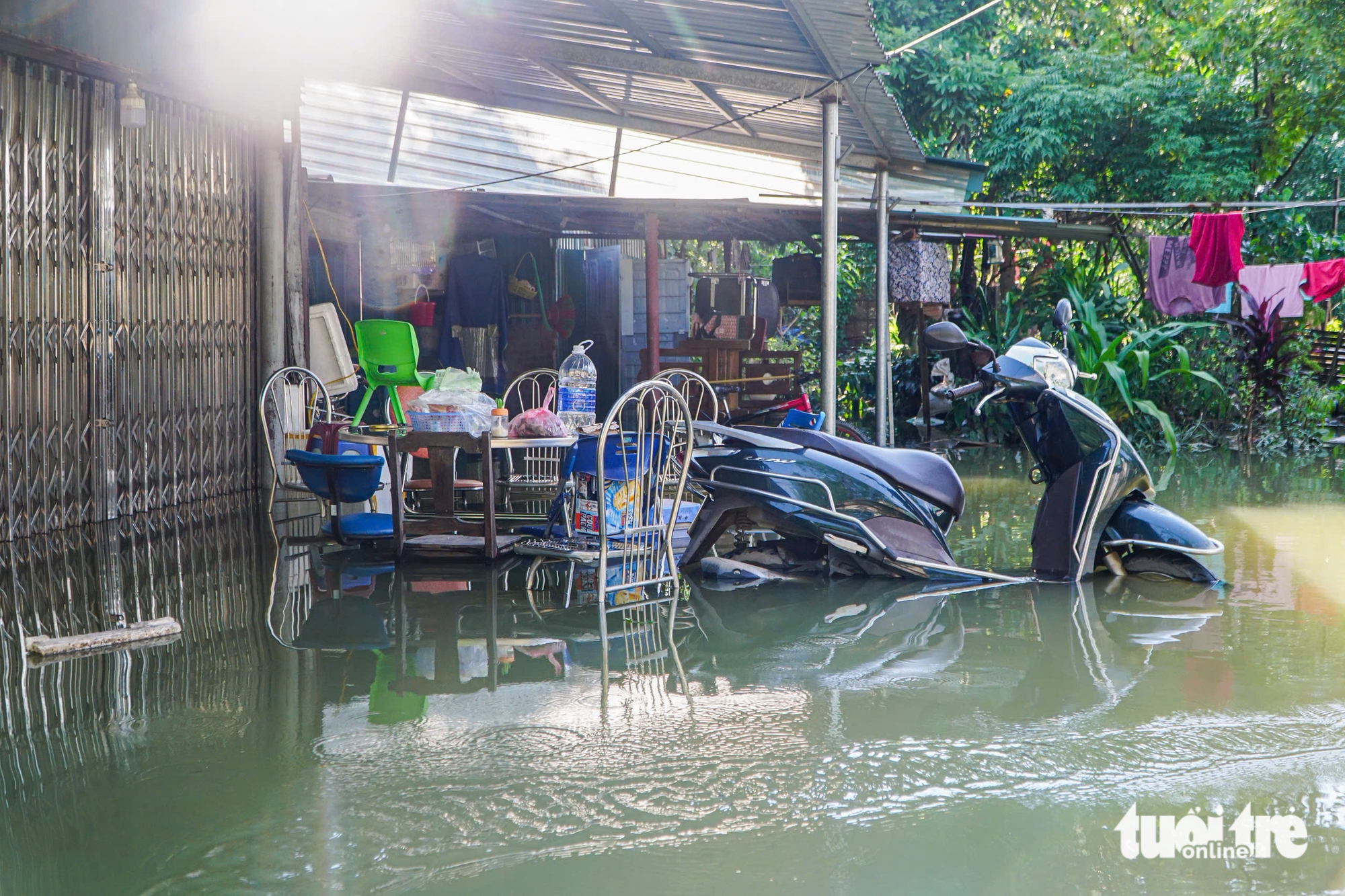 Nhiều nhà dân bị ngập sâu quá nửa căn khiến hàng loạt tài sản như đồ gia dụng, xe máy... bị nhấn chìm, gây thiệt hại lớn.