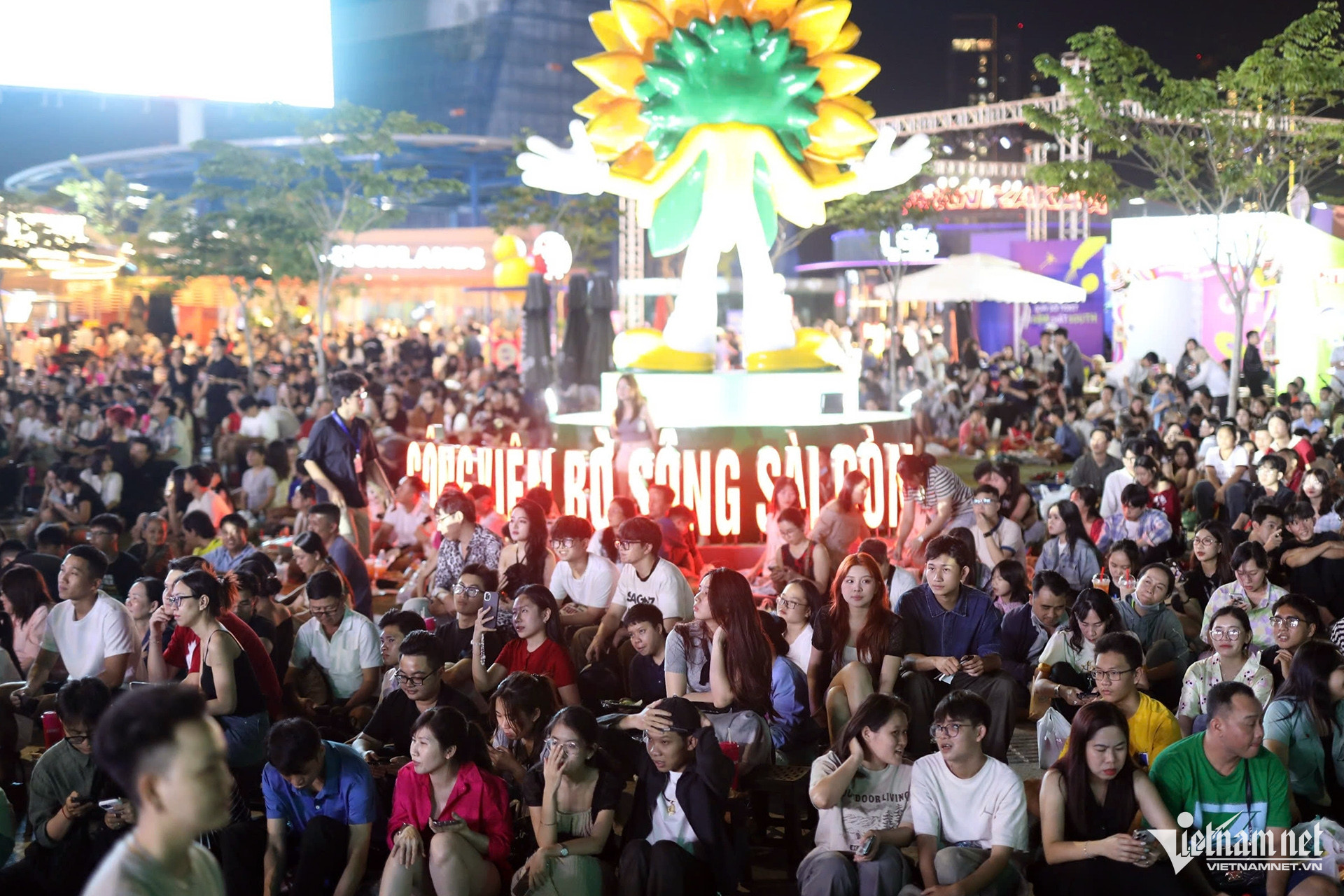 Cảnh tương tự tại Công viên bờ sông Sài Gòn. Các gia đình và bạn trẻ đã sớm ổn định chỗ ngồi ngay từ hơn 19h.