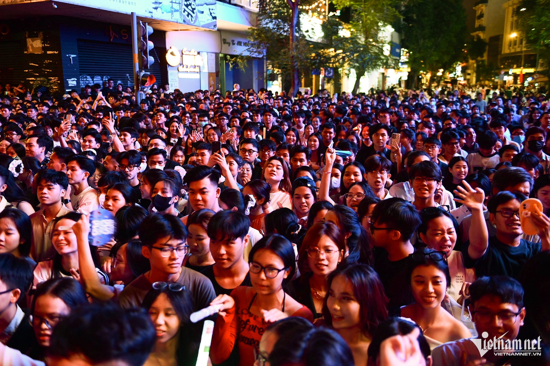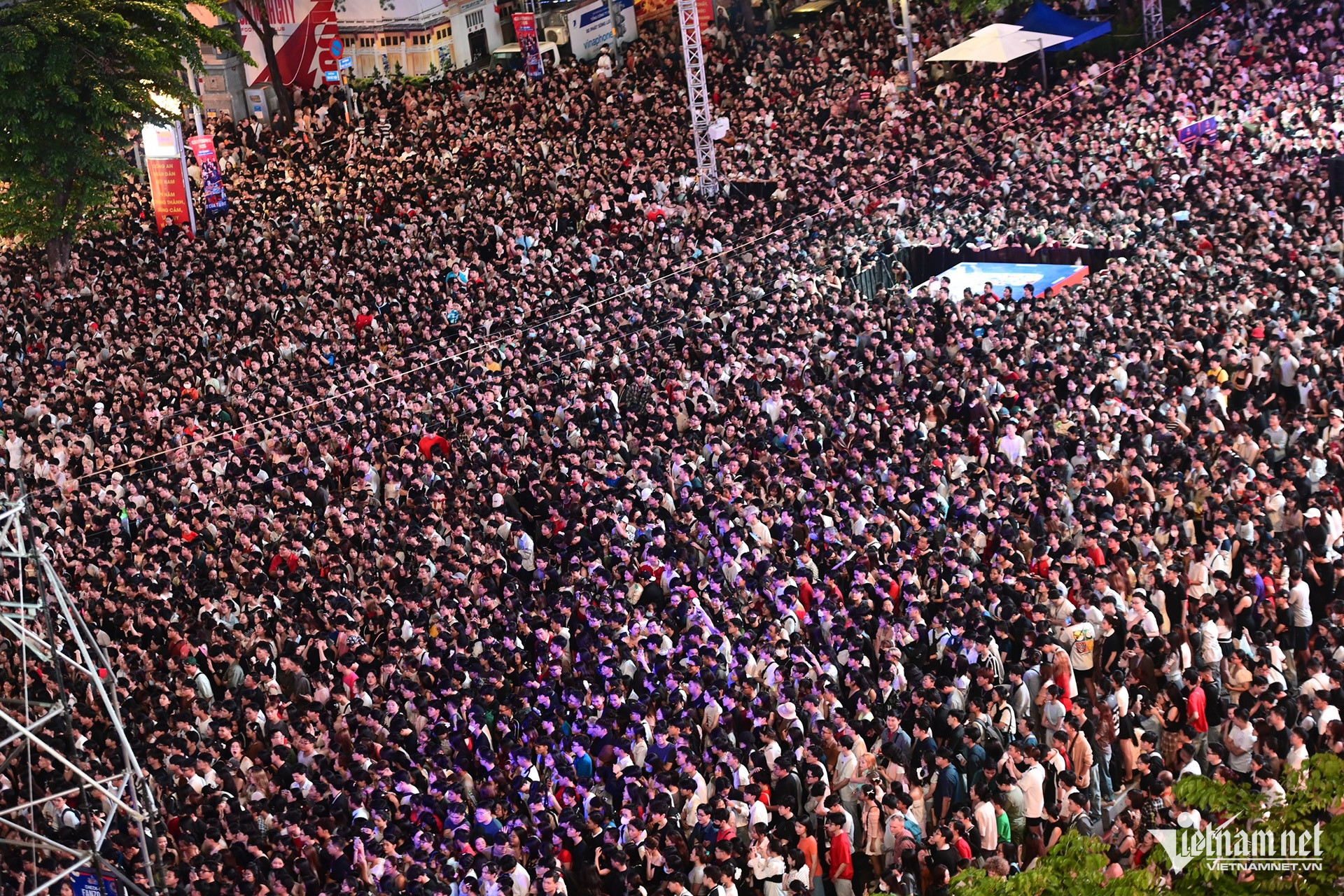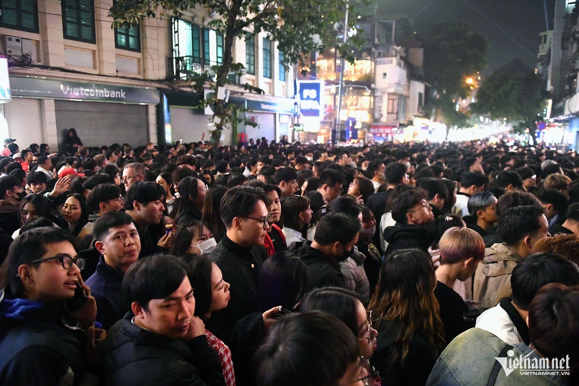 Cảnh tượng đông nghẹt người cũng xuất hiện từ 20h30 tại khu vực quảng trường Đông Kinh Nghĩa Thục (Hà Nội).