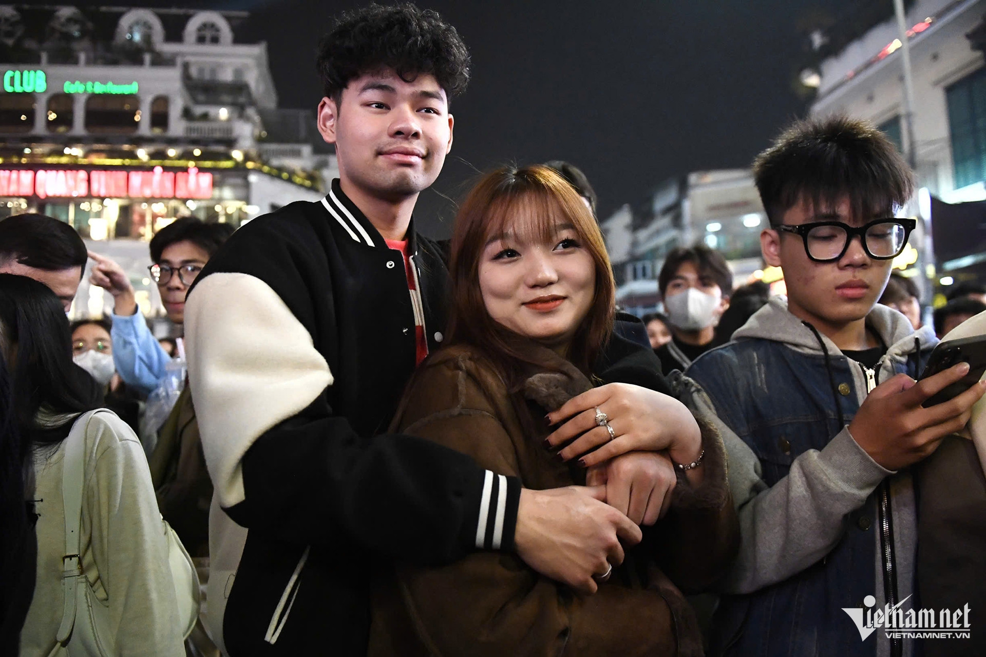 Hoàng Ly cho biết, đây là lần đầu tiên đi xem countdown tại Hà Nội. “Chọn Thủ đô là điểm du lịch dịp năm mới, tôi rất hào hứng. Tuy nhiên, khi tới đây hai vợ chồng phải chen chúc rất cực khổ. Quả thực tôi không lường trước là sẽ đông đến vậy. Chúng tôi sẽ cố gắng ở lại tới 0h để ngắm pháo hoa”, nữ du khách nói.