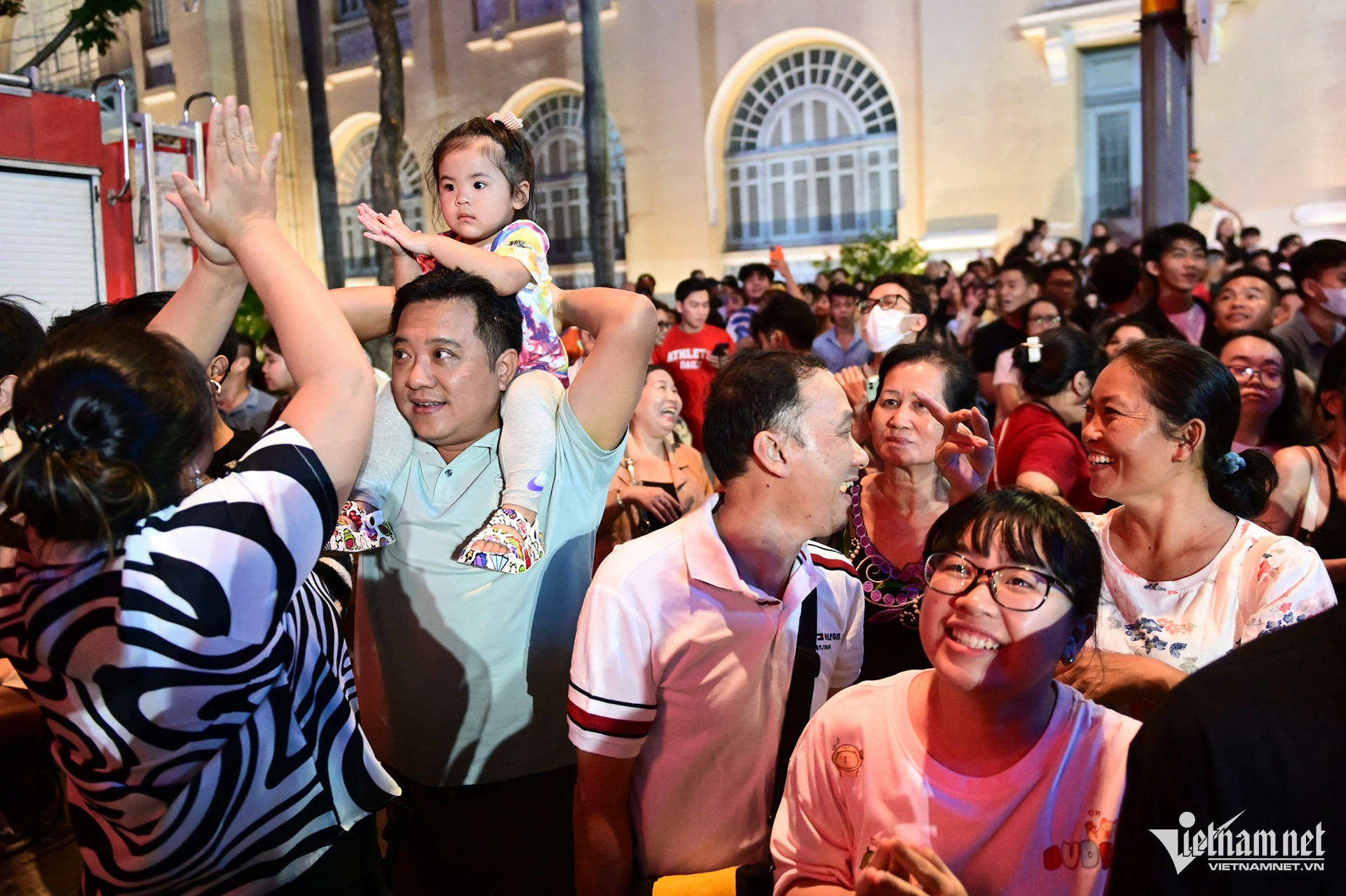 Đây là năm đầu tiên gia đình anh Tuân (quận 6) dẫn con gái đi xem pháo hoa. "Mọi năm bé còn nhỏ không tiện vui chơi chỗ đông người. Lần này tôi đọc thông tin có chương trình ca nhạc ở phố đi bộ Nguyễn Huệ nên cả nhà cùng đi, sẽ chờ đến lúc pháo hoa bắn để xem", anh Tuân nói.