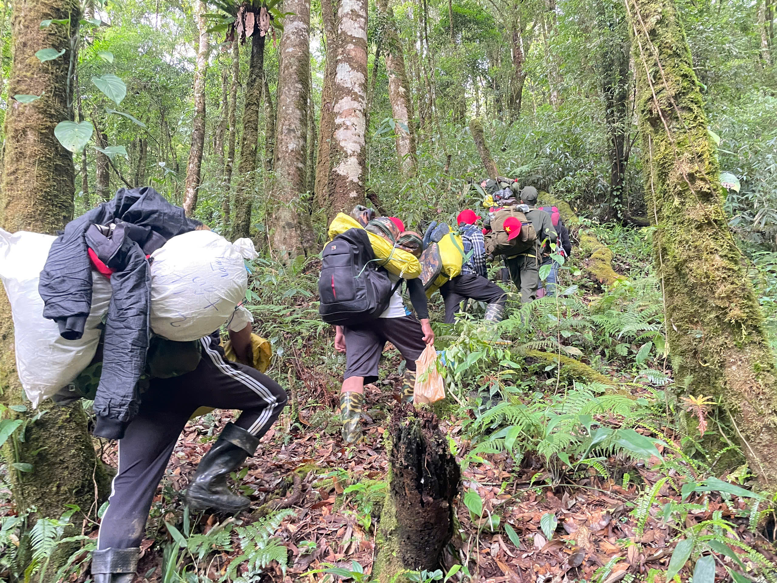 Đoàn chinh phục đỉnh Ngọc Linh có sự hỗ trợ gùi hàng của người dân bản địa