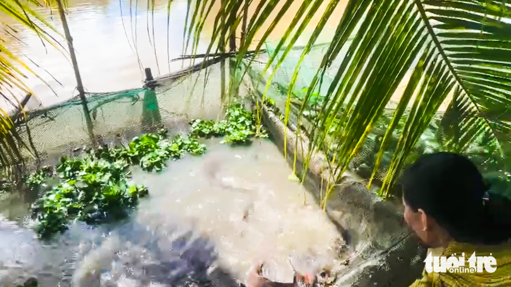 Dính cá trê to nên anh Đà thả lại nuôi trong vèo chứ không bán.