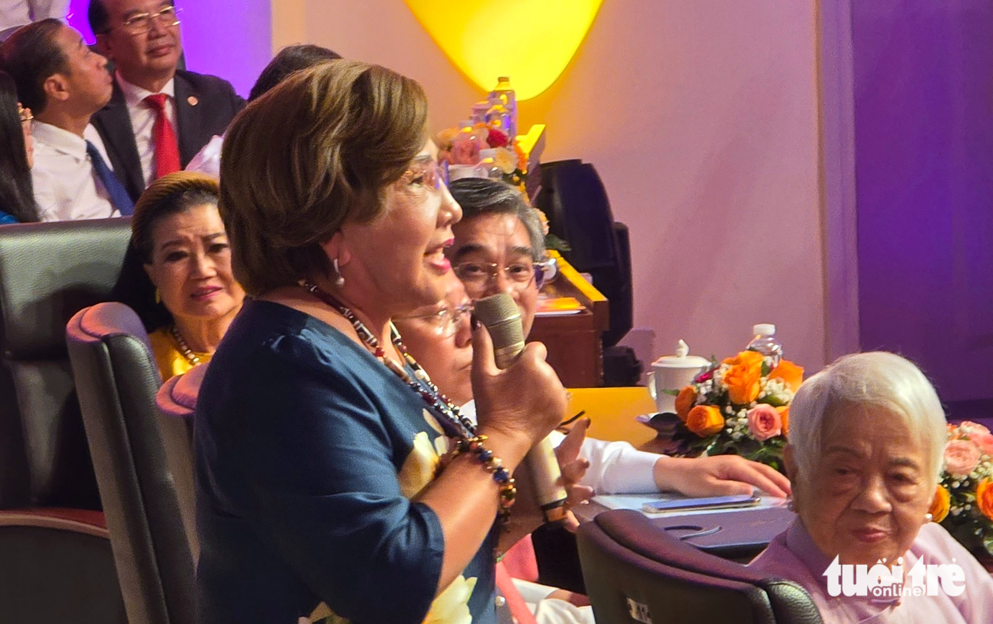 Nghệ sĩ Lệ Thủy phát biểu, nghệ sĩ Kim Cương và đạo diễn Xuân Phượng quan tâm lắng nghe - Ảnh: MI LY