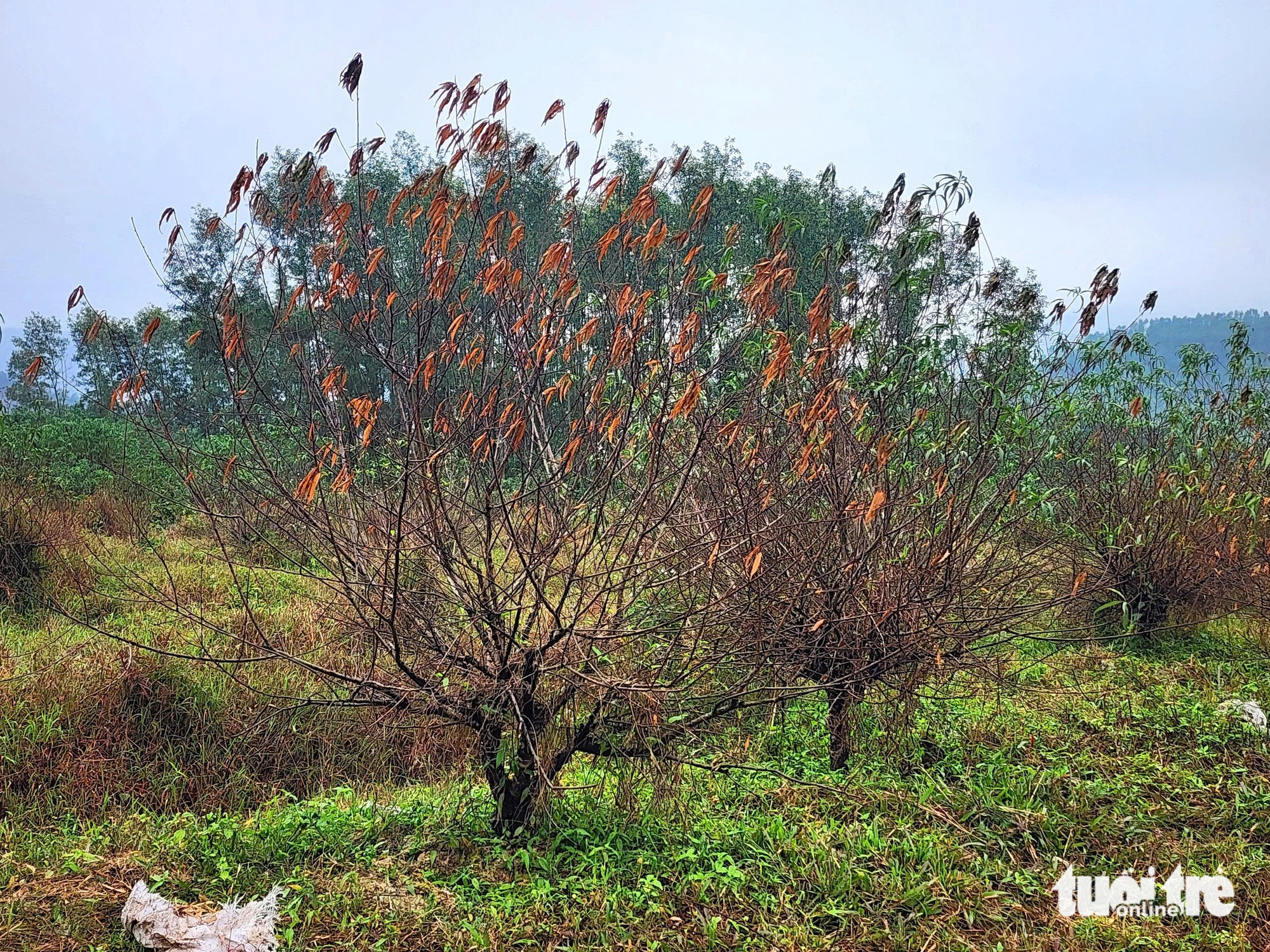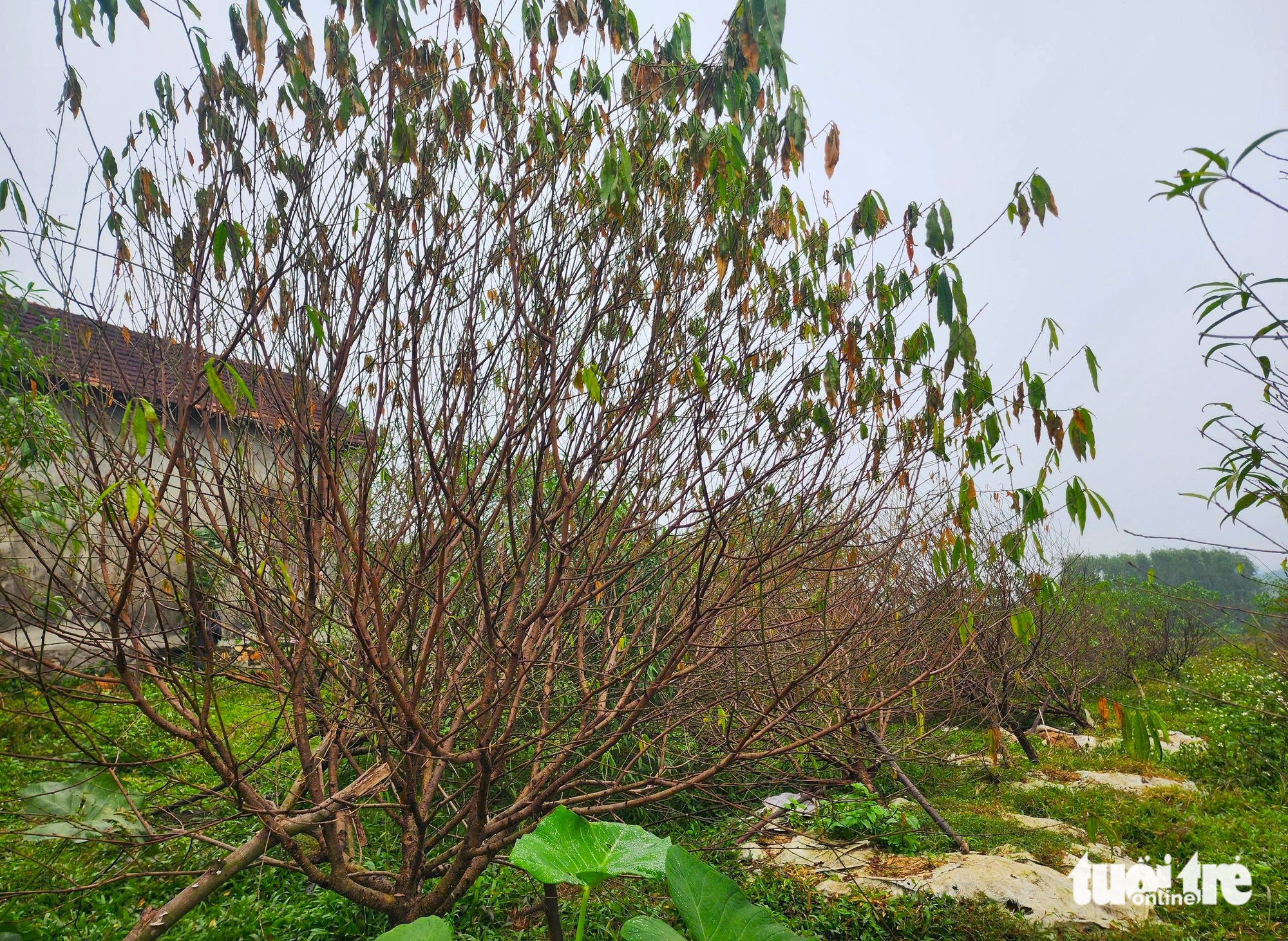 Mr. Huu's family planted more than 100 peach trees that are 2-3 years old, but dozens of them have died and wilted. The living trees have not shown any signs of blooming, making his family very worried when Tet is only a few months away.