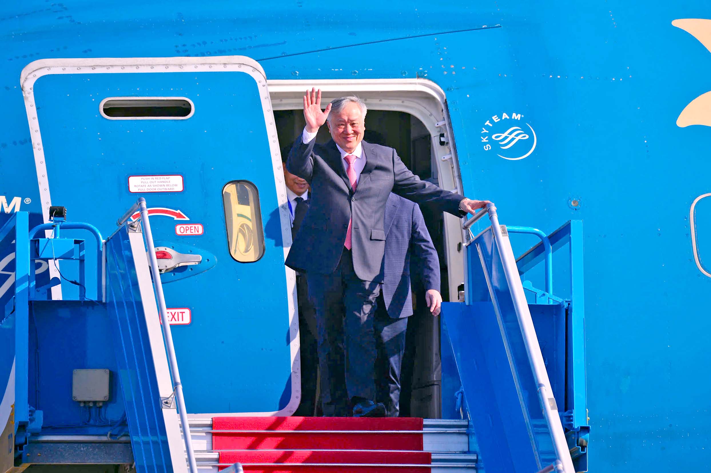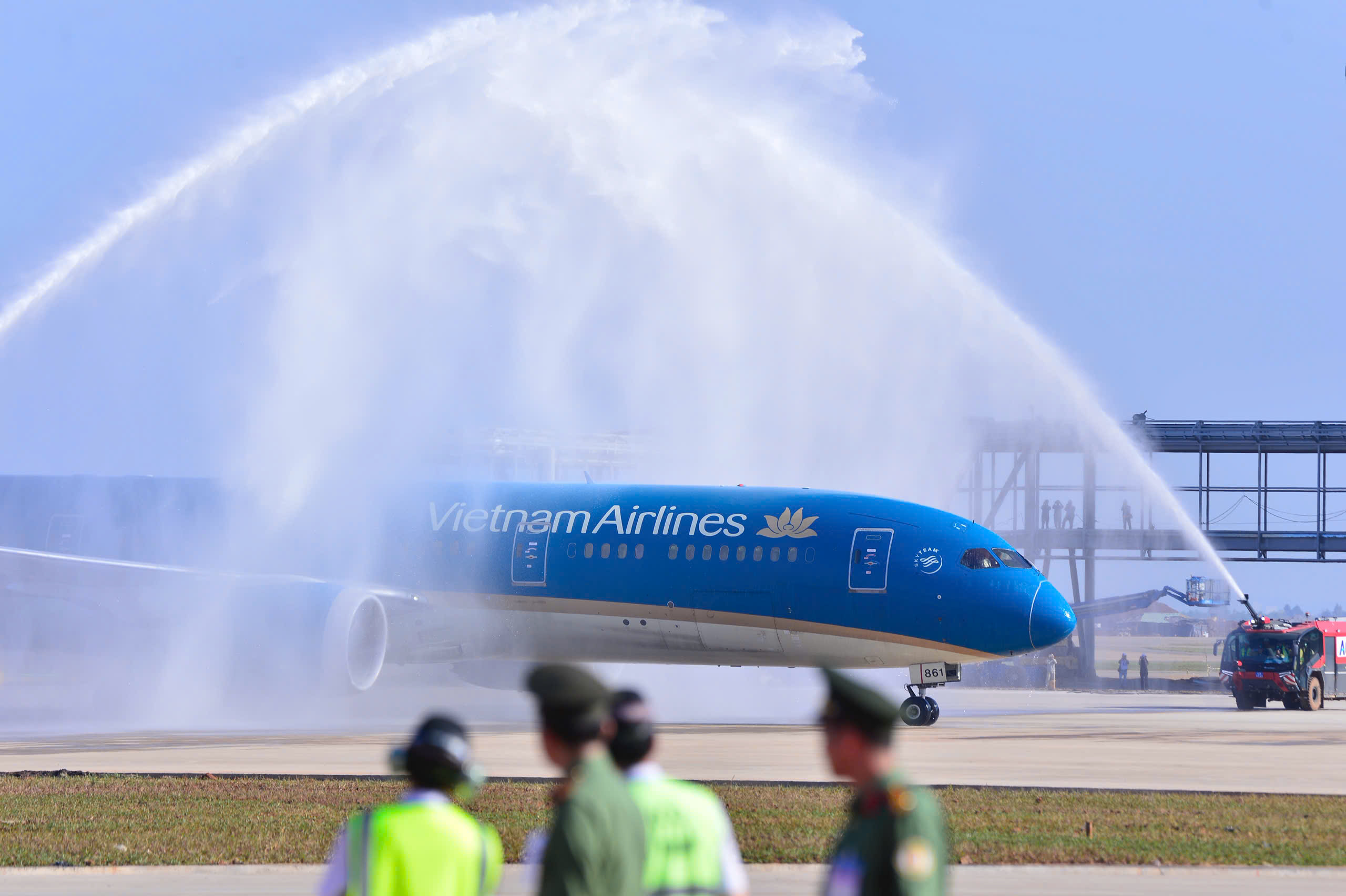Vietnam Airlines' Boeing 787, flight number VN1, carrying Deputy Prime Minister Nguyen Hoa Binh and nearly 100 passengers, successfully landed at Long Thanh Airport.