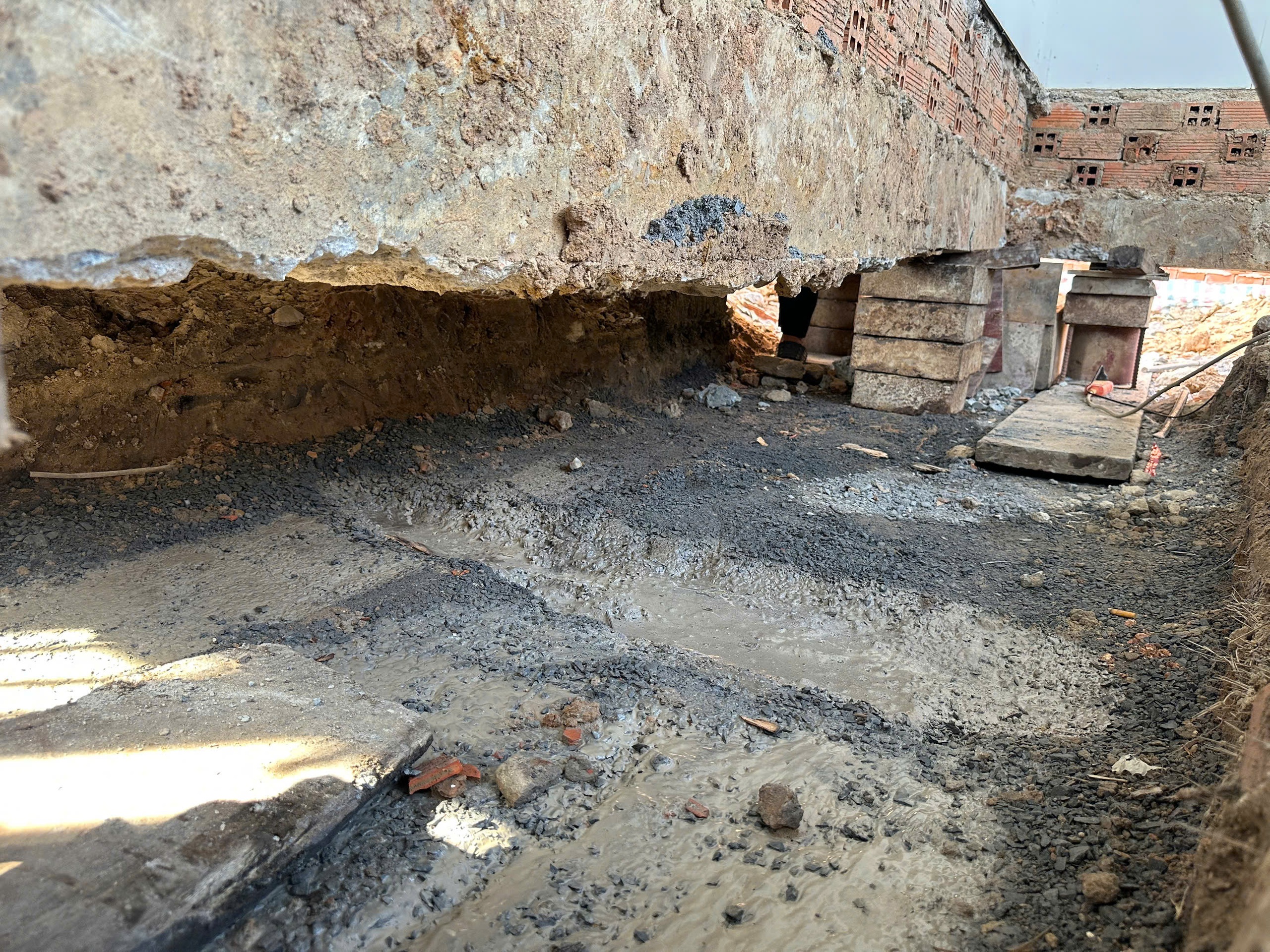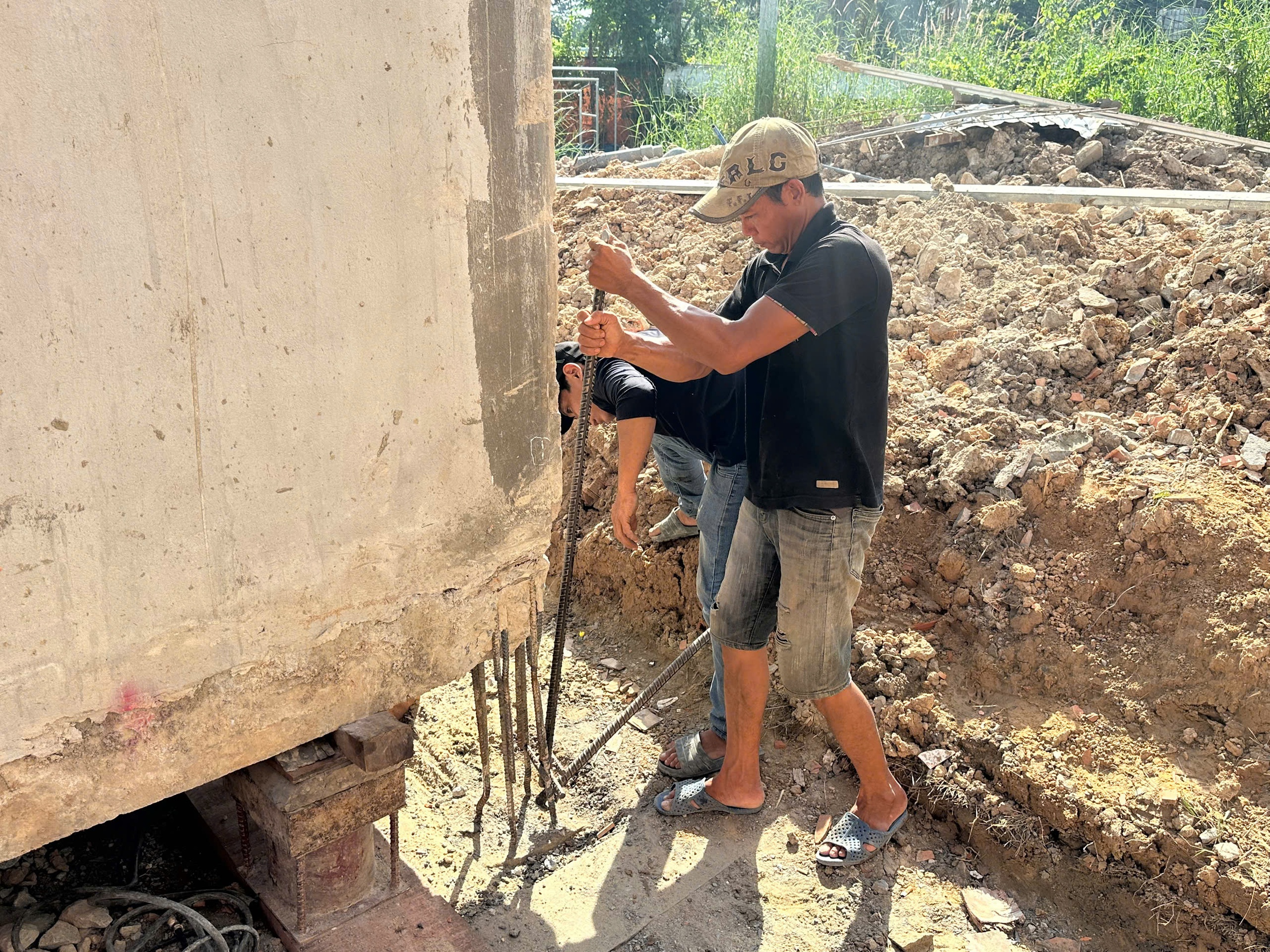 Móng nhà được "thần đèn" thi công để di dời - Ảnh: B.SƠN