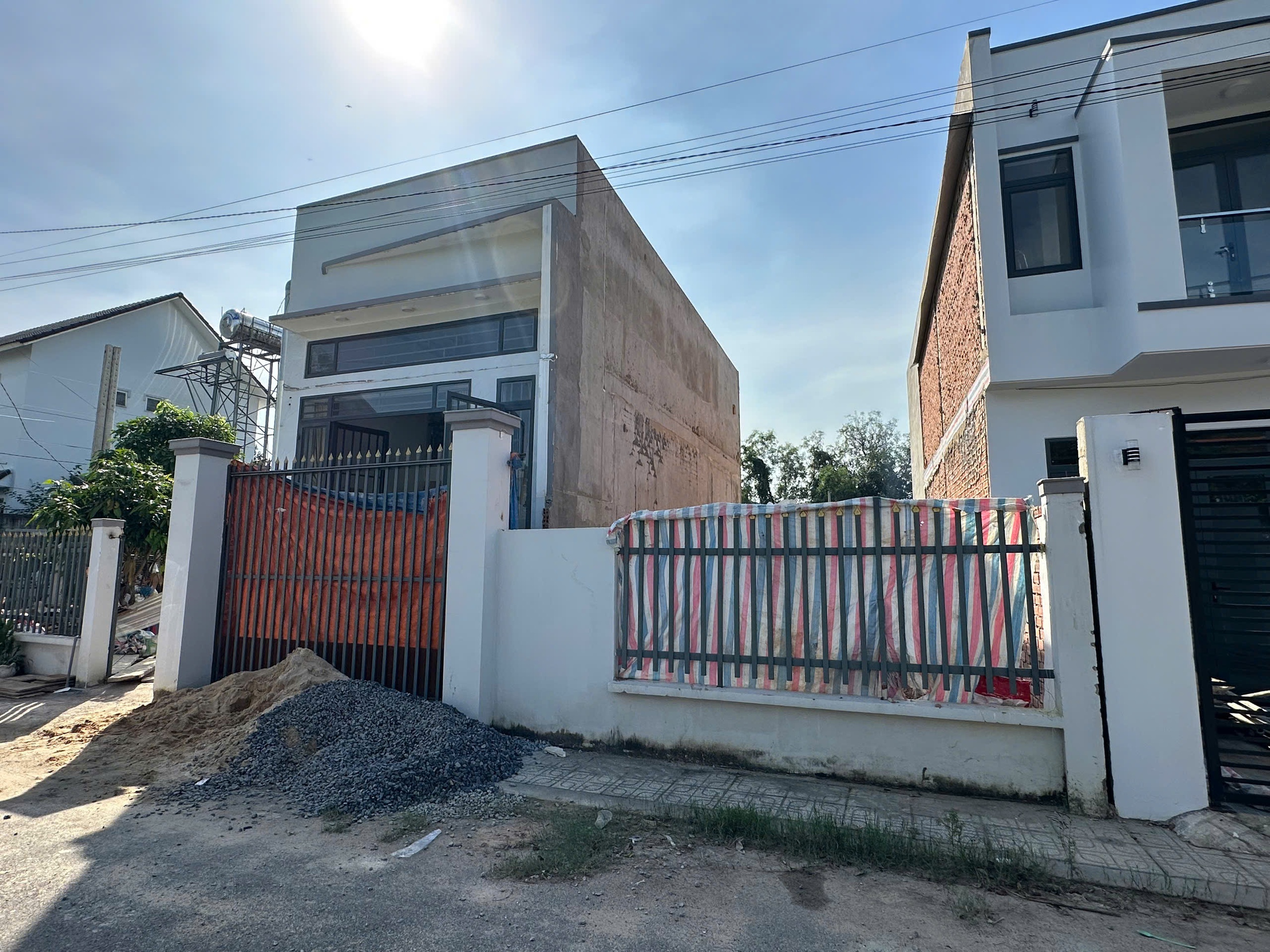 Hiện trạng căn nhà (bên trái) và thửa đất (có hàng rào, che bạt) sau khi di dời nhà - Ảnh: B.SƠN