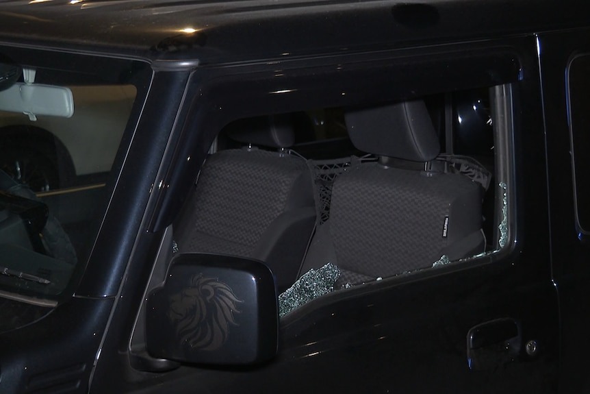Cửa kính một chiếc ô tô bị vỡ trong vụ việc mà các nhân chứng mô tả là nghe thấy "một loạt tiếng súng" - Ảnh: ABC NEWS